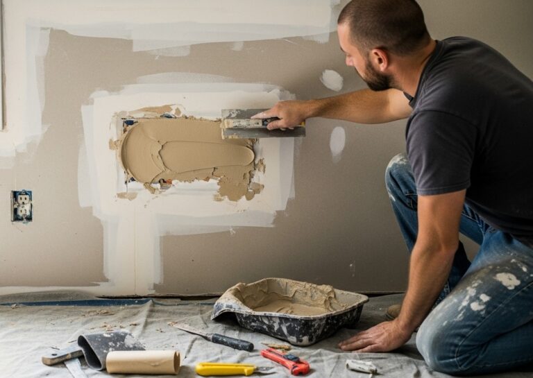 We don't just slap mud over a hole. We cut the damage out squarely, install rigid wood backing, and screw in a new piece of gypsum board. This ensures the repair is structurally sound and never cracks.